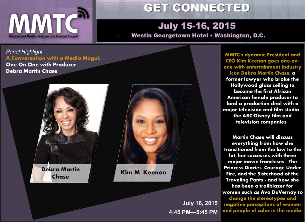 MMTC’s dynamic President and CEO Kim Keenan goes one-on-one with entertainment industry icon Debra Martin Chase, a former lawyer who broke the Hollywood glass ceiling to become the first African American female producer to land a production deal with a major television and film studio - the ABC/Disney film and television companies.